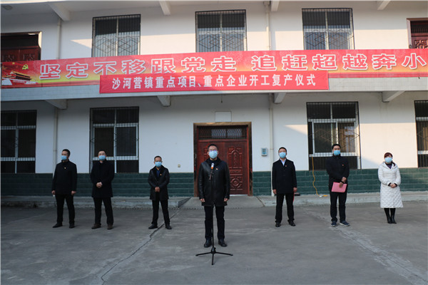 開工儀式上,沙河營鎮黨委副書記、鎮長肖利安緊緊圍繞各開工復工的重點項目和重點企業在新型冠狀病毒肺炎疫情期間防控防護和應對措施做了闡述,要求各企業在保證員工健康安全的前提下,加大生產力度,追趕一季度生產目標。